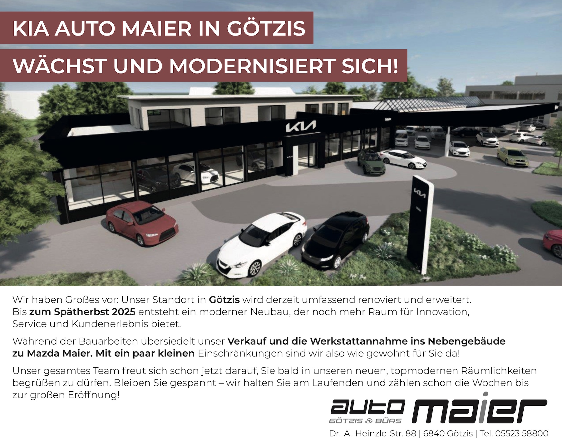 Das Team von Kia Auto Maier in Götzis & Bürs beantwortet Ihre Fragen kompetent und fachkundig und wir freuen uns, Ihnen bei Ihrem Anliegen weiter zu helfen.